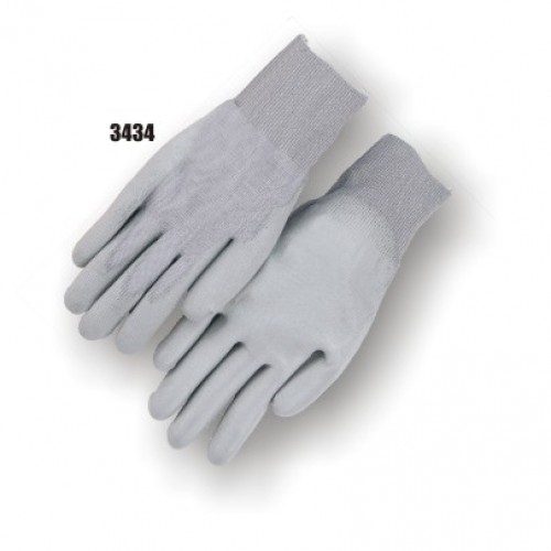 Polyurethane palm-coating on a 13-gauge seamless knit nylon liner.