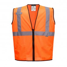 Orange Class 2 Mesh Fabric Zipper Closure Vest